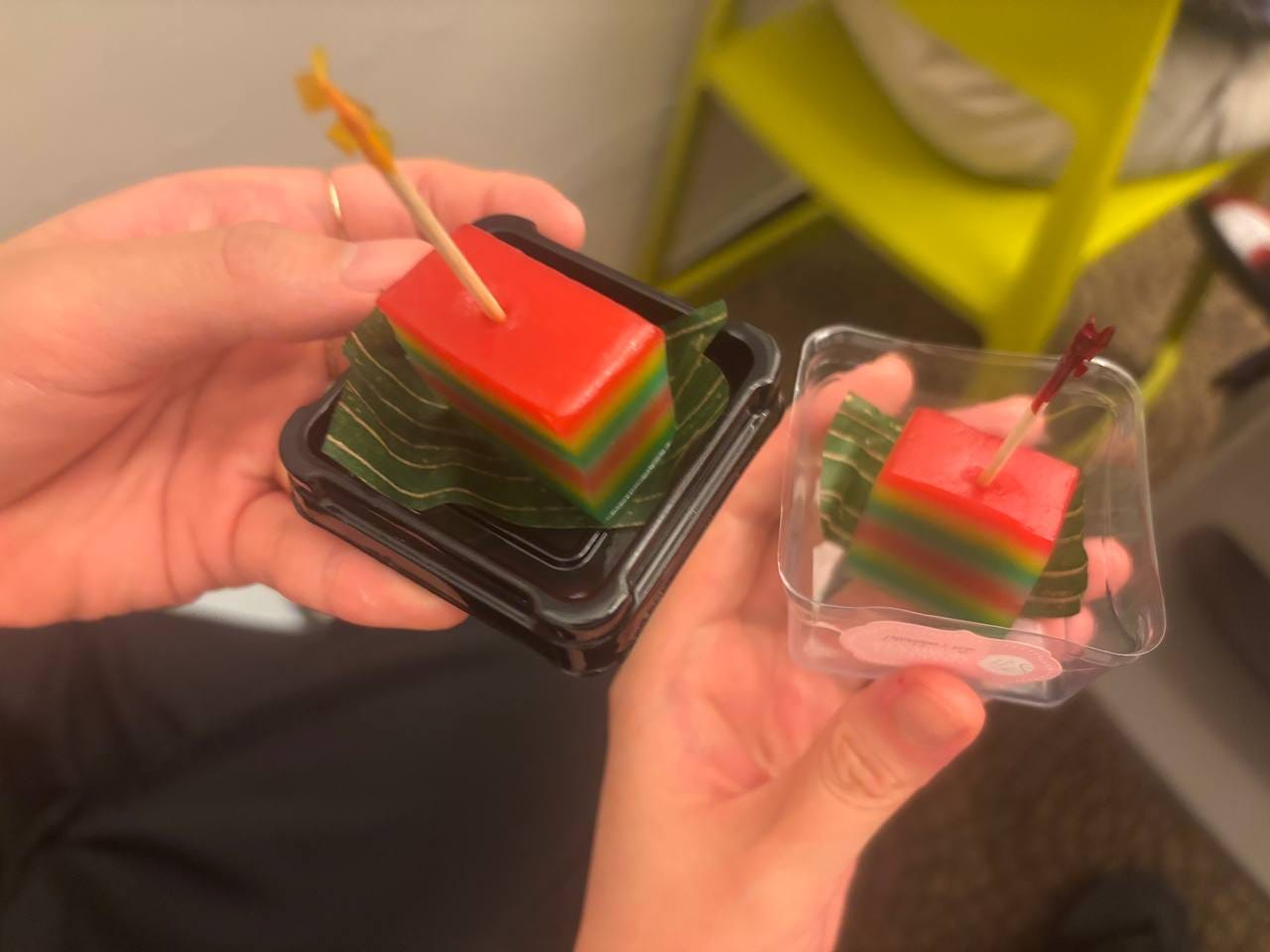 The first course was a rainbow kueh lapis served with Ben Tan Kai Xiang and Grace Cheu Li Qing’s prismatic animation Mountain Mountain (2025). The film opens with two siblings in a cable car ascending to the peak of Mount Faber — a misnomer, since Mount Faber is, technically, a hill. Like a child stretching out the pleasures of a dessert, the film peels back layers of memories, as the characters recall their childhood longing to see actual mountains in all their majesty. The nostalgic treat returned us to our younger selves, our yearning to scale the grandest heights and stand before vast vistas of possibility.